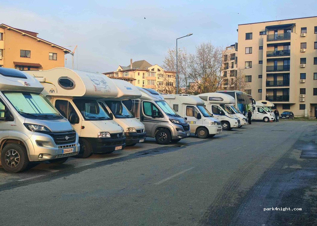 We spent the night here. Plenty of space. Felt safe. No shadow. In the morning, auto-school, I believe it was test day. Many people and many cars. Luckily we parked near sector 12-13 of the stadium, it was okay, although we were still close to the turmoil of the auto-school, we were protected from the noise of the street and close to the guard. 4G reception works perfectly (orange Telekom)