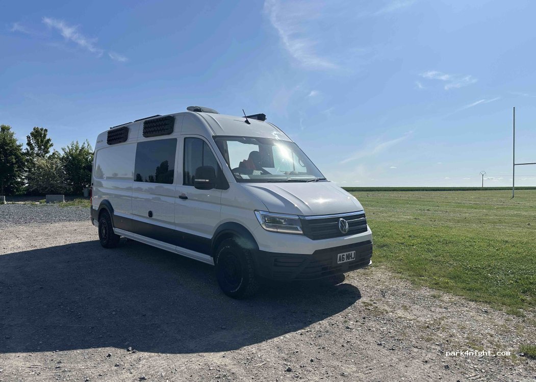 Parking of the rugby field of the club b-west located in the village of Piètrain in the town of Jodoigne. Ideal for a night of transit, in peace, with view on the fields, neither water, nor electricity, nor bins. Thank you to respect the cleanliness of the place.