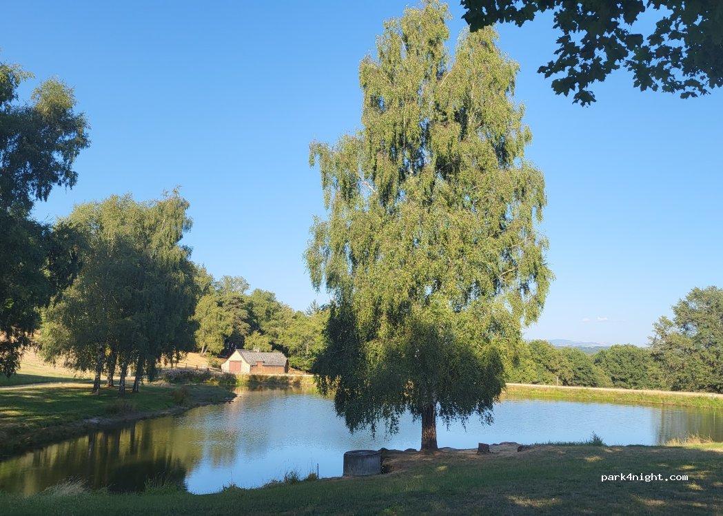 Aire à côté d'un petit lac, joli et agréable pour les pêcheurs. Par contre route un peu passagère, quelques voitures.