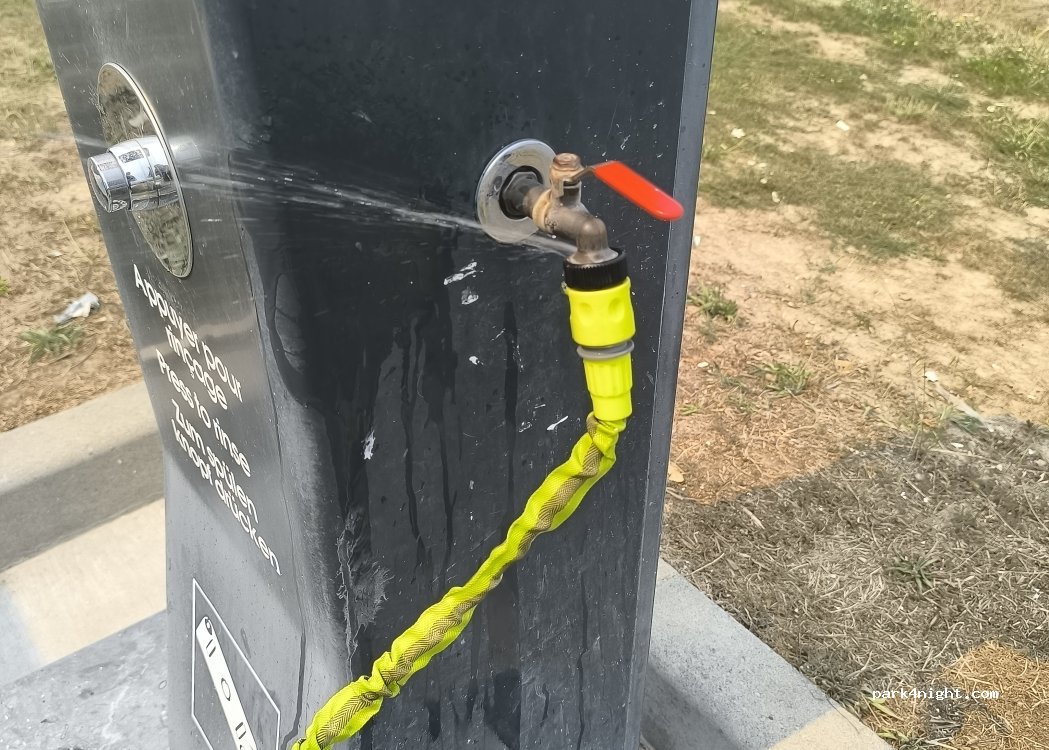 Prévoyez 2 pièces de 1 € pour nettoyer votre cassette ET prendre de l'eau. Zone très propre et pratique pour y stationner le temps d'une vidange.
