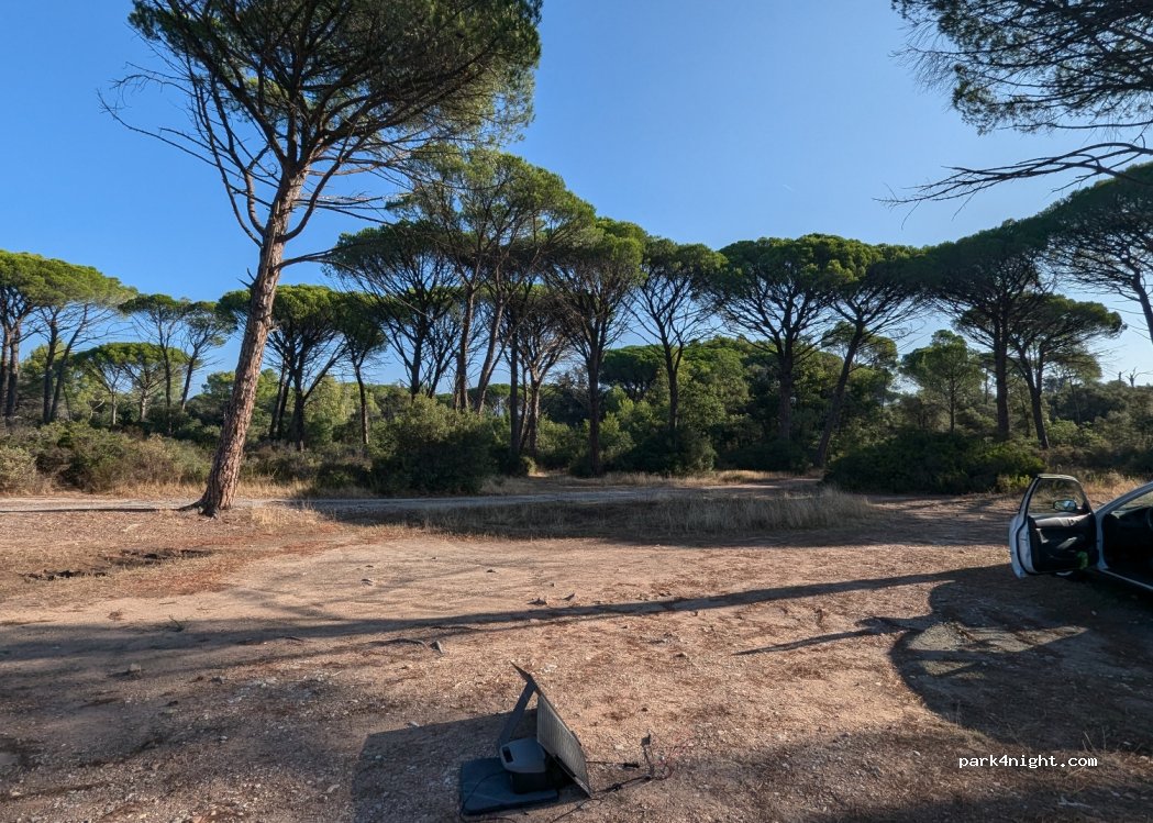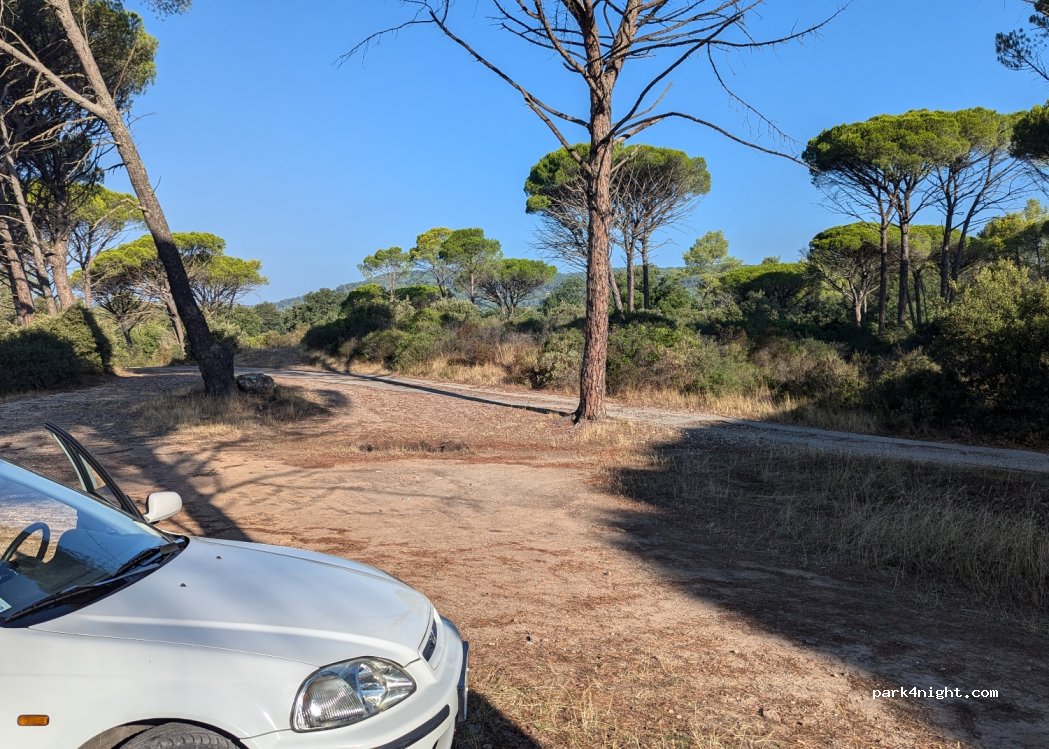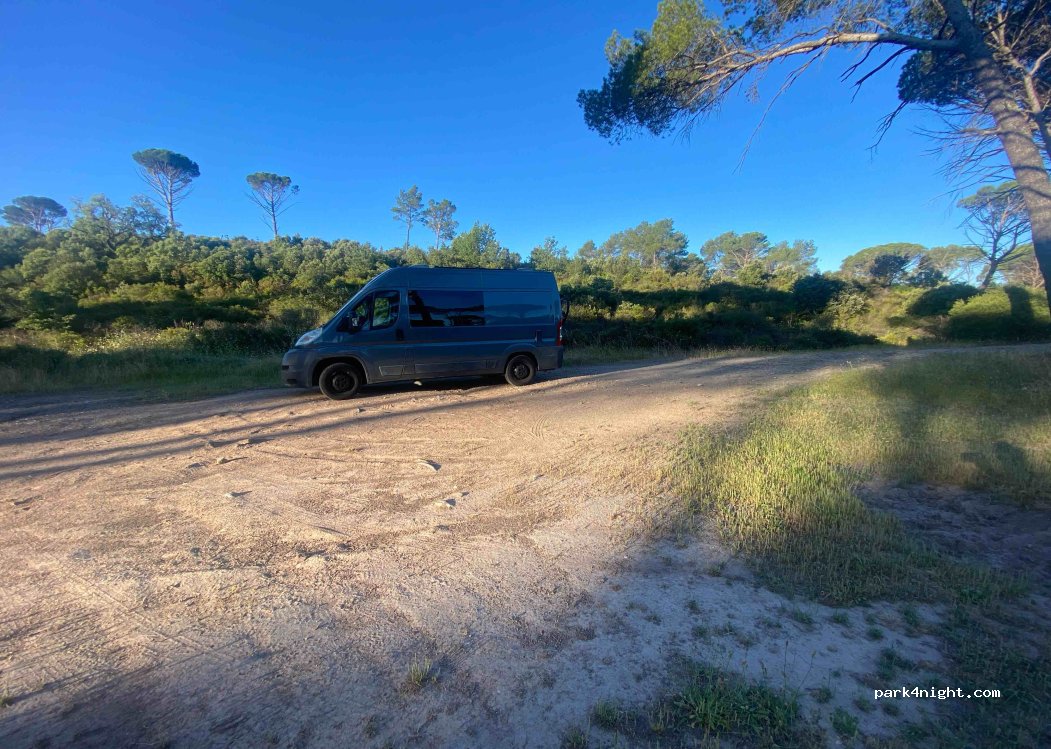 Posteggio tranquillo situato in un piccolo boschetto demaniale. Pianeggiante e tranquillo la notte, un po’ piu affollato la mattinata da persone del posto che fanno jogging e vanno a camminare col cane. Facilmente raggiungibile dalla strada principale, in una zona residenziale tranquilla con villette e piscine.