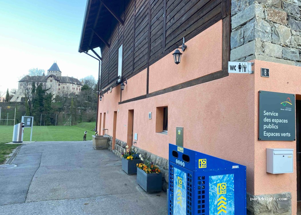All info (prices, times) still accurate during our stay. We spent two peaceful nights. Pretty view on a small castle. Public and clean toilets nearby. Also close to a supermarket and an amazing bakery. Great!