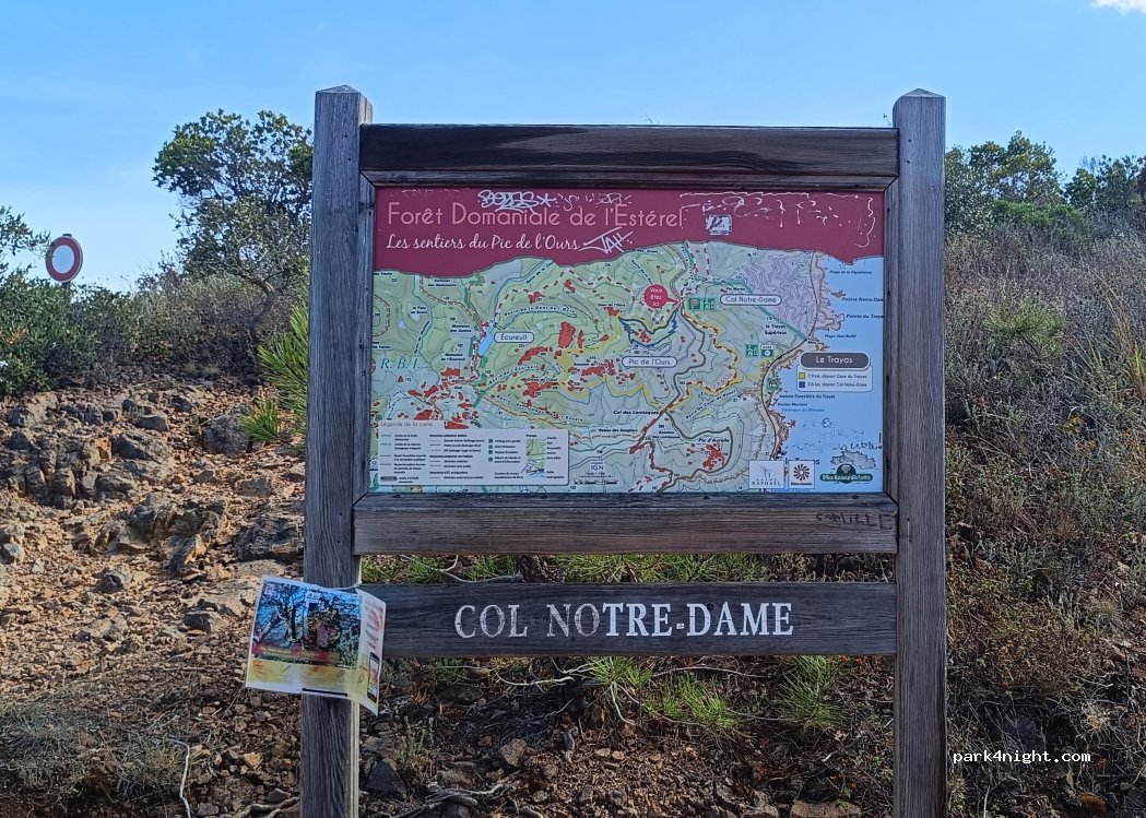 Petit parking donnant accès a plusieurs randonnées. Joli point de vue sur l’espérèrent et la mer . Table de pique-nique.