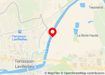 Endroit paisible et ombragé le long d'un chemin bordant la rivière d'un côté et des plantations de noyers, maïs,...de l'autre. Prévoir les moustiquaires en été. On y croise des joggers, cyclistes et randonneurs avec leurs chiens en soirée et matinée. Seulement à 20 mns à pied du vieux bourg historique de Terrasson-Lavilledieu, très agréable à visiter!