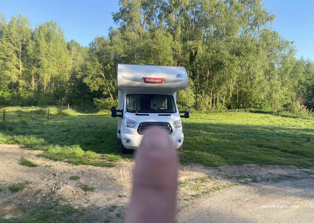 Halte parfaite en pleine nature non loin d'étangs et de balades. Intéressant de visiter le restaurant à côté, bonne cuisine à prix étudiés, on peut aussi y aller juste pour boire un verre dans un bus US vintage ! Nous n'avons vu aucune trace d'interdiction, merci de stationner sur l'espace vert et non sur le bitume qui sert pour les demi tours