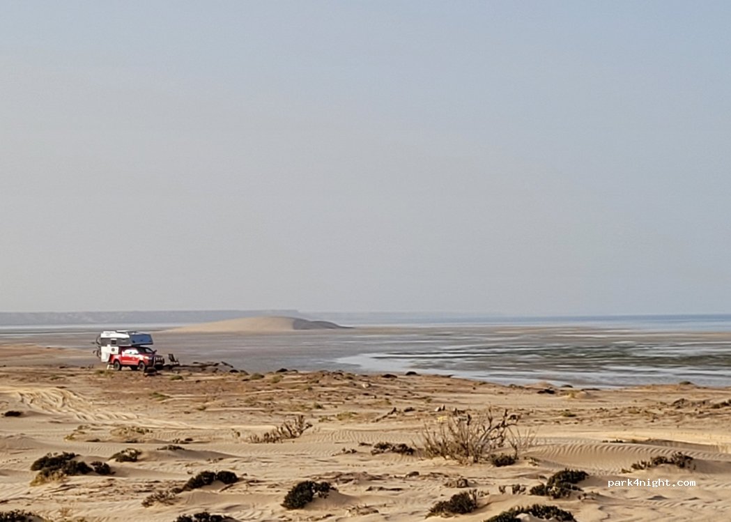 Wonderful spot with magnificent view over La Dune Blanche and the Bay of Dakhla. You need 4wd to get here on the piste. A couple of fishermen and some 4wd cars to visit the Dune otherwise calm. There are several spots to park at.