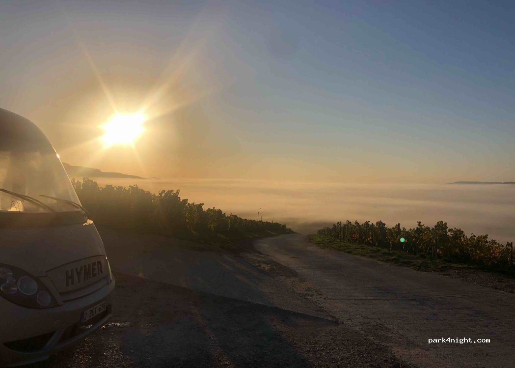 Nice view over the vines. Small flat car park for 2/3 motorhomes. Easy access