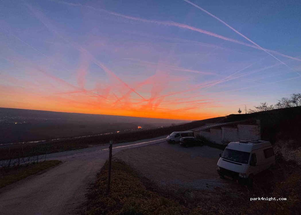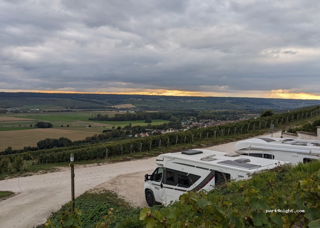 excellent wild site within vineyards at outskirts of historic village. some road noise from valley bottom and people pass into vineyards from v early morning. level parking for 2 could get 3rd on. no hassle from anyone. beautiful. much better than Epernay municipal.....