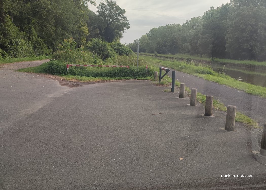 Parking très isolé au bord du canal Possibilité de garer trois camping-cars Tranquillité maximale nous avons passé une nuit sans problème table de pique-nique entre les arbres sur verdure, fortement conseillé de comparer les trois zones situées juste à côté