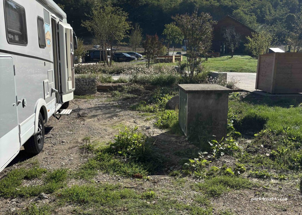 Il faut remonter la note de ce camping, je met 5 étoiles parce qu'à partir de 14h il y à de l'ombre sur la moitié des places, et avec ces plus de 30° ça fait du bien, et pour 7euros les 24h avec eau et vidanges gratuite, en plus vous avez une belle ballade de 30mn autour du petit lac , un petit jardin gratuit fleuri à 20m. De la 4g et la télé râteau et sat. Par contre il faut caler sur le côté