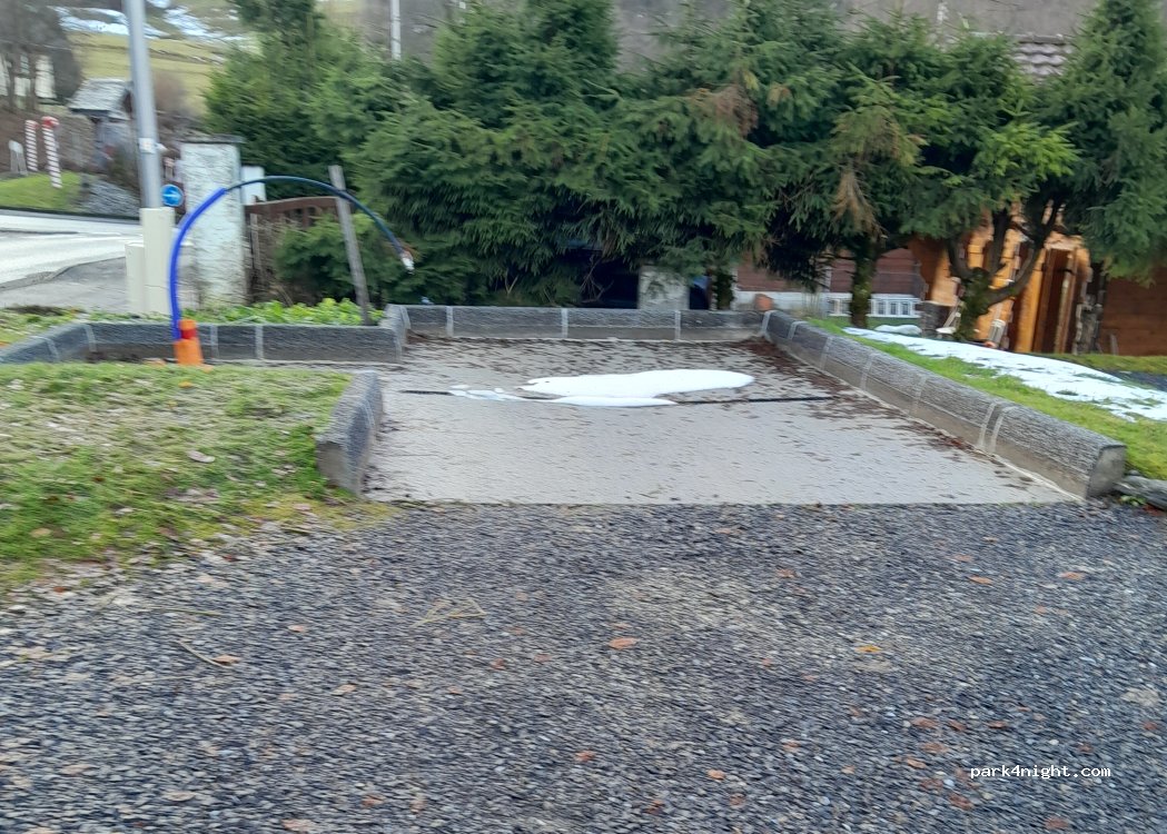Terreno molto tranquillo, su terra battuta, segnalato "parcheggio camper" Nessun servizio, negozi a circa 1 km