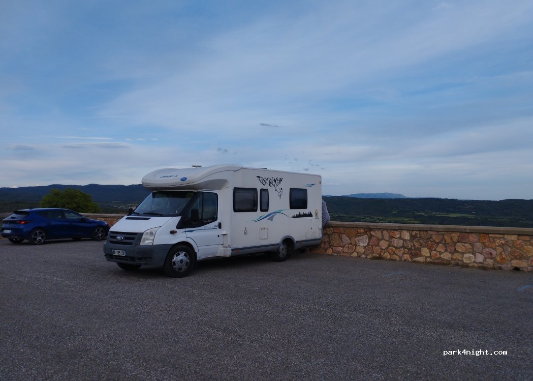 parfait pour une nuit, pas de panneaux d'interdiction pour la nuit. merci à la commune pour cet espace. Très calme, proche du très beau village à visiter. des départs pour des randonnées