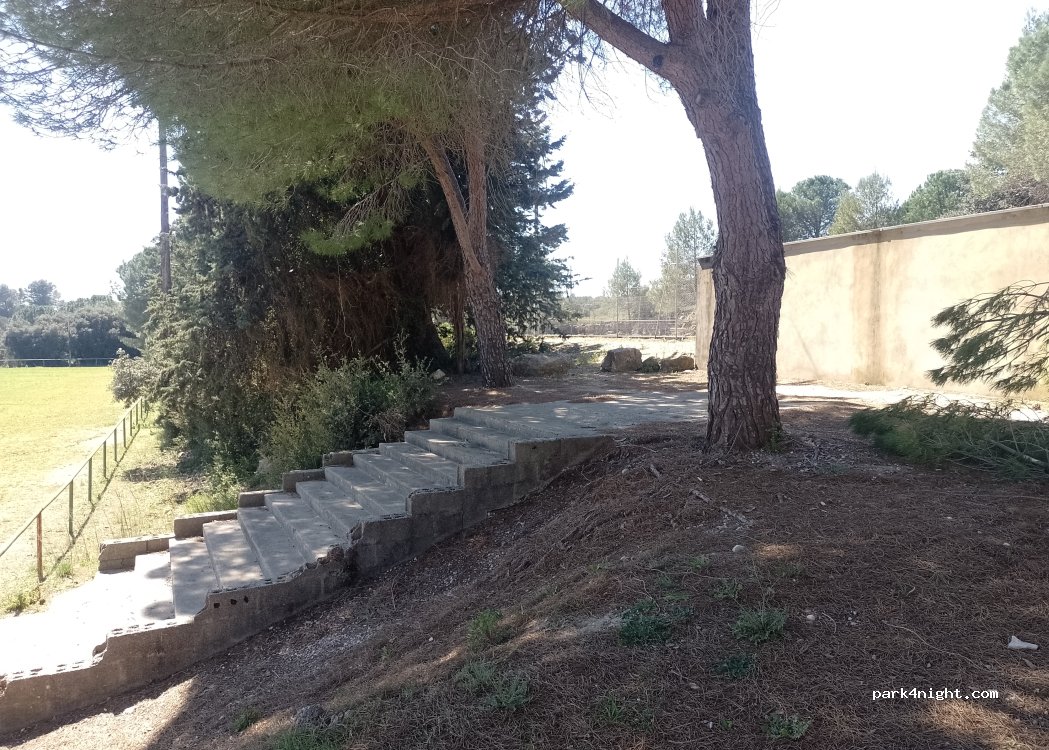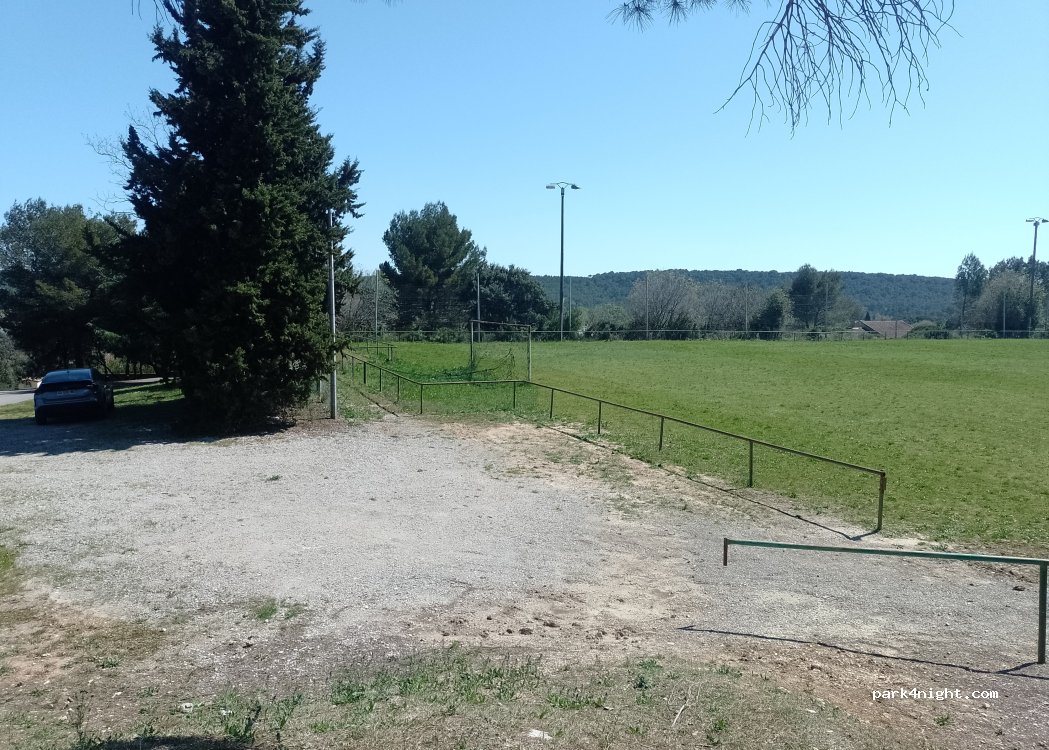 Parking lot of the football field, given its state, no one plays on it. At the edge of a road but relatively calm on this Sunday afternoon. Water point and barbecue on site. It should pass for the night without problem.
