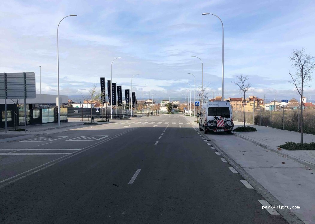 Cet ensemble de parkings le long d'une voie à faible trafic est situé dans une nouvelle zone d'immeubles en construction. Calme de jour comme de nuit, les lieux ne manquent pas à proximité, permettant de rejoindre le centre-ville de Grenade par le tram tout proche en une vingtaine de minutes. La visite de l'Alhambra nous a pris 5 heures (possibilité de prendre les billets sur place sans réservation préalable en basse saison et tôt - une pièce d'identité est nécessaire à l'entrée). Nous y avons passé 2 nuits en toute sécurité. Très bon compromis pour visiter la ville.