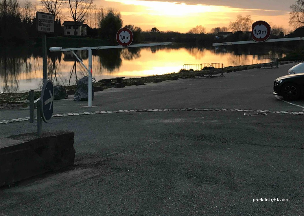 Small free car park separated into two parts, one of which is inaccessible at most 1.90m. Please note that it is not suitable for large motorhomes.