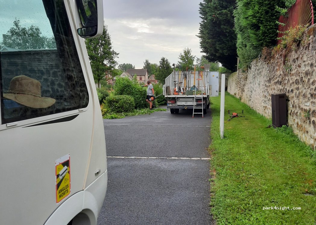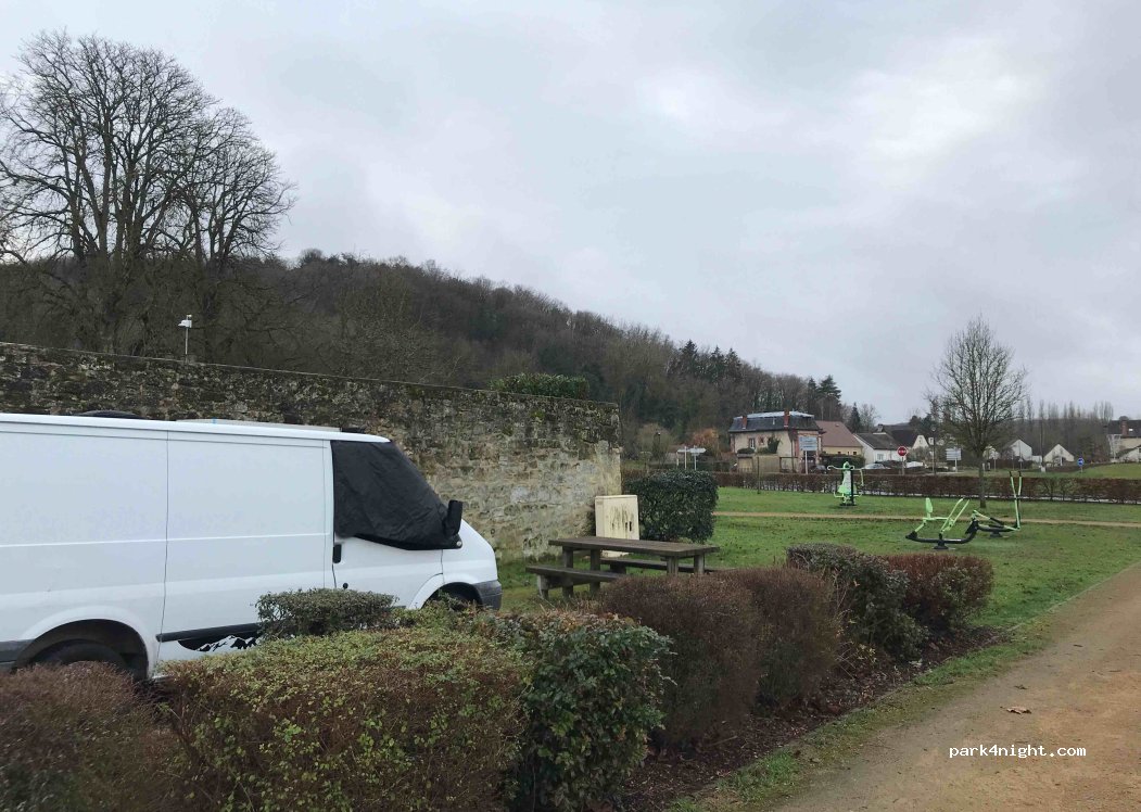 Stayed in March 21 arrived about 8pm and 2 of the 4 spaces taken Great quiet spot away from Laon in a beautiful small village all within walking distance to amenities. The only downside is there's dog poo everywhere as this parking lot sits on a communal park with kids climbing frames etc so popular with dog walkers - dog owners generally don't clear their dogs' mess away in France!