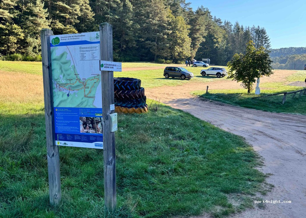 En ce mois de septembre il est possible de stationner la journée sur ce parking improvisé dans un parc. Ideal pour les sentiers de randonnées et le « colorado Alsacien ».