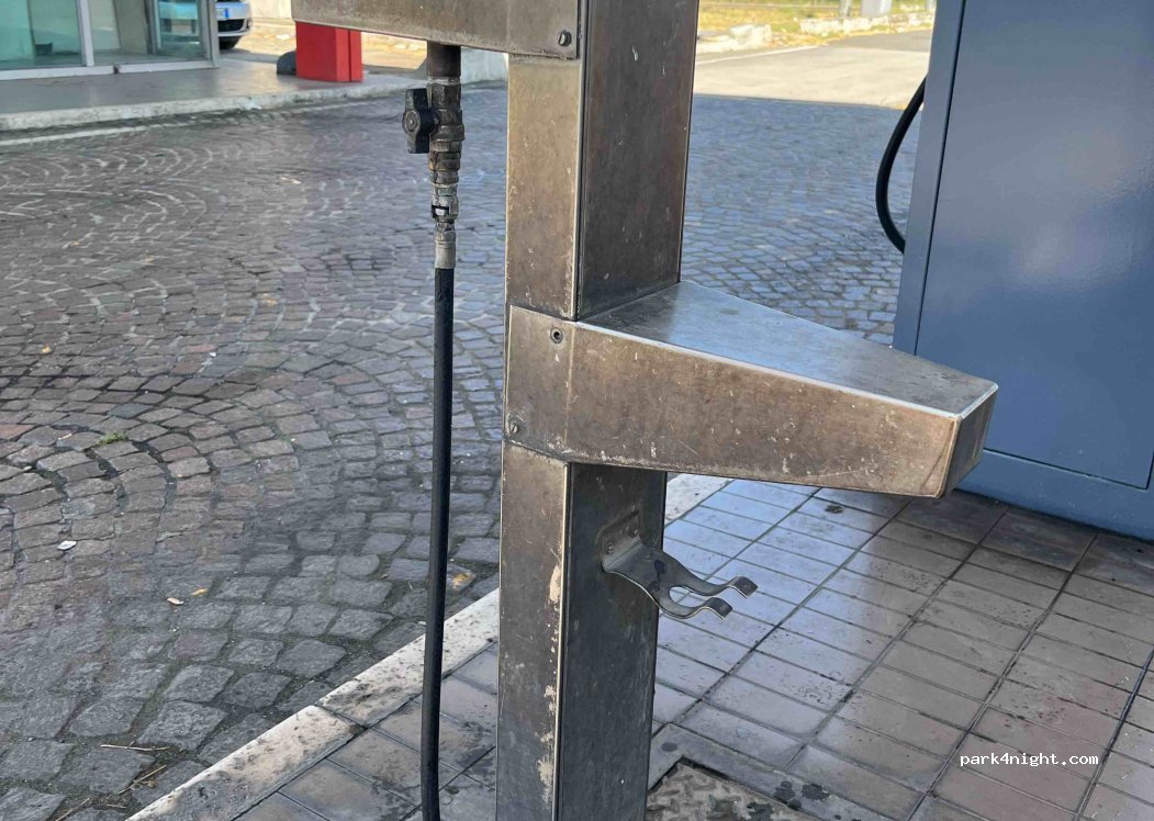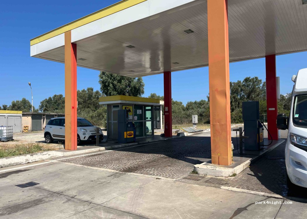 suffisant pour une étape en Van avant la sicile je confirme, si on demande gentiment, on a accès à la douche pour 3€ ici on trouve magasin, vente tabac, pizzeria,... 3 grands arbres à l'entrée suffisent pour l'ombre