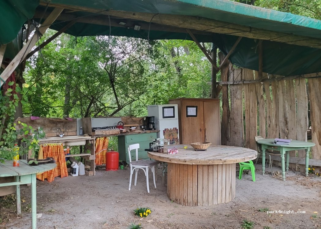 Superbe lieu avec l’impression d’être au milieu de nul part et pourtant si proche de tout. Un accueil chaleureux, un espace pr se préparer à manger, des douches, bref on n’a manqué de rien.
