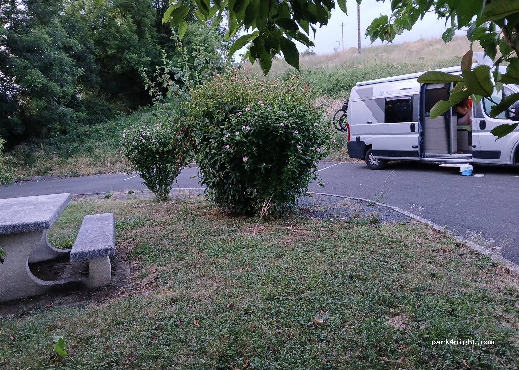 Nous avons passé une nuit sur cette aire de cc. facile d'accès, ycompris aux gros cc. Très calme, bien agencée avec table de pique-nique. Attention, pas d'eau l'hiver ! Pas d'indication sur le point d'arrivée, mais, c'est juste à côté d'un parking entre 2 virages. Un grand merci à la municipalité pour cet accueil.