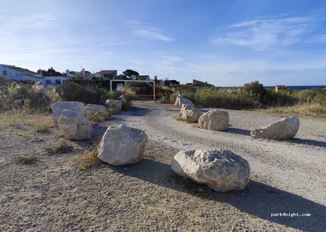 Effectivement le spot est très sympa, en bord de mer. Mais la municipalité a fait poser des gros cailloux à l'entrée du parking pour former un virage impossible à prendre avec un van rallongé comme le mien. Juste à côté de l'entrée, il y a une barrière qui était ouverte hier mais je n'ai pas osé rester car il y a des panneaux interdisant le stationnement des CC tout le long de la rue.