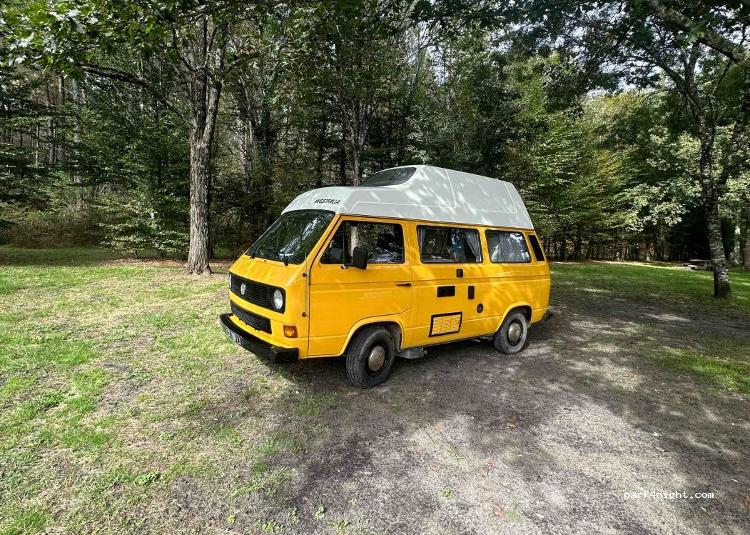 Belle aire, beaucoup d'espace et ombragée, sanitaire propre, robinet extérieur pour dépannage mais difficile faire le plein car robinet au milieu de la pelouse.