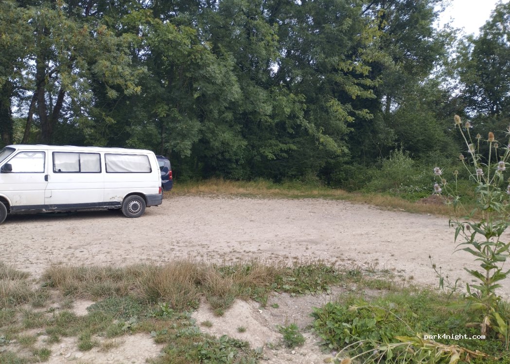 Espace plat, assez grand pour 4/5 véhicules, nous étions 2 cette nuit. Calme, juste au bord de l'Ain, avec un joli sentier qui mène à des petites plages. Le bruit de l'autoroute ne nous a pas dérangé plus que ça, mais c'est un aspect très subjectif. Aucun service sur place