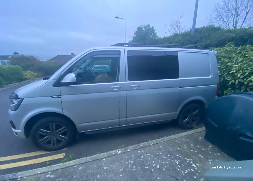 Loads of spaces, no barrier. Would fit RV style campervan. free after 6.30pm , pay again in morning from 8.30am. 2 min walk to Sean's bar in athlone. Safe spot, great location, 3 other campers here.
