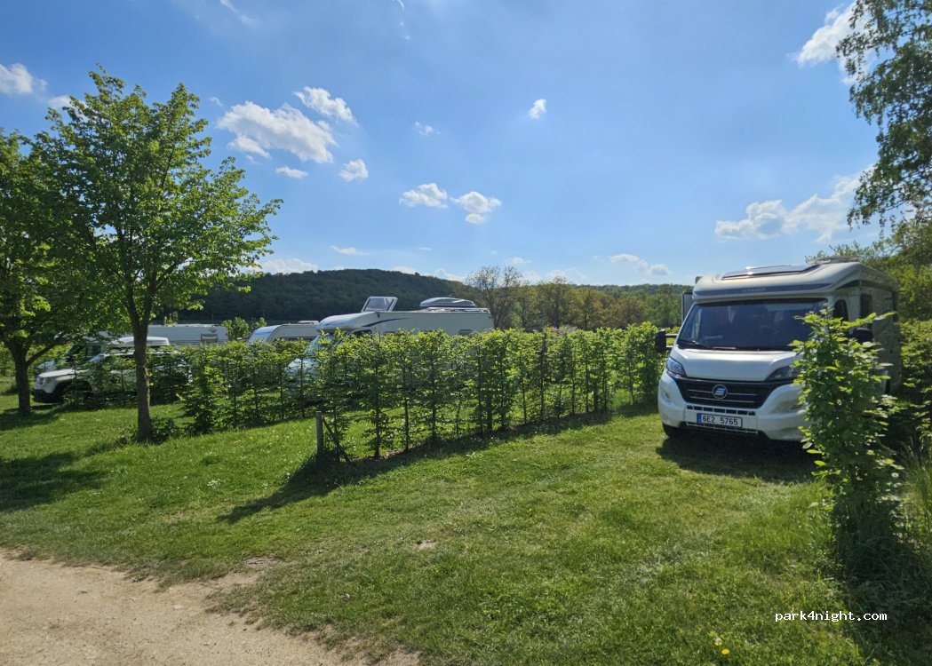 Schöner Ort,einfache Zufahrt.”check-in” ein wenig komplizierter,da der supernette Mann nur Tschechisch spricht. Man muss anrufen und er kommt vorbei,schaltet alles frei und kassiert bar ab.Eine Infotafel mit der Telefonnummer in mehreren Sprachen vorhanden. 300 für Stellplatz und jeweils 100 für Strom und Wasser. Kein Schatten, aber Plätze durch Hecke abgetrennt. Viele Mülltonnen. Sauber & Nett.