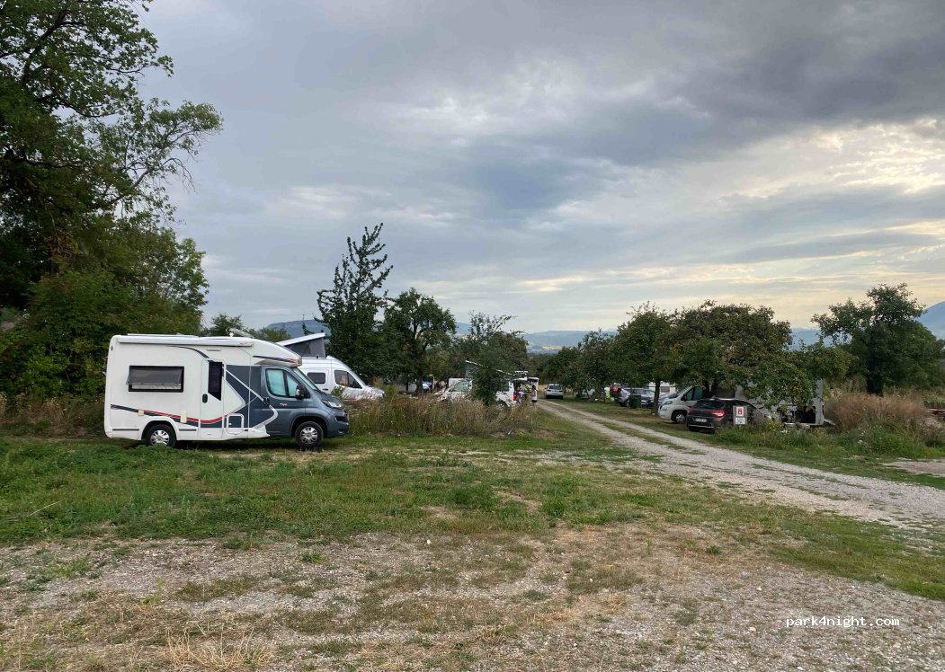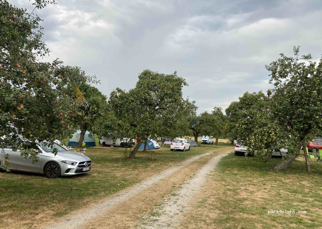 Accueil : +++ super agréable et conviviale Stationnement : +++ dans un verger dans l'herbe stationnement libre beaucoup de places plutôt plat. Lieu tres reposant. Sanitaires : ++ anciens, mais propres Sommes arrivés par hasard,cette alternative est top pour 16 euros (especes).