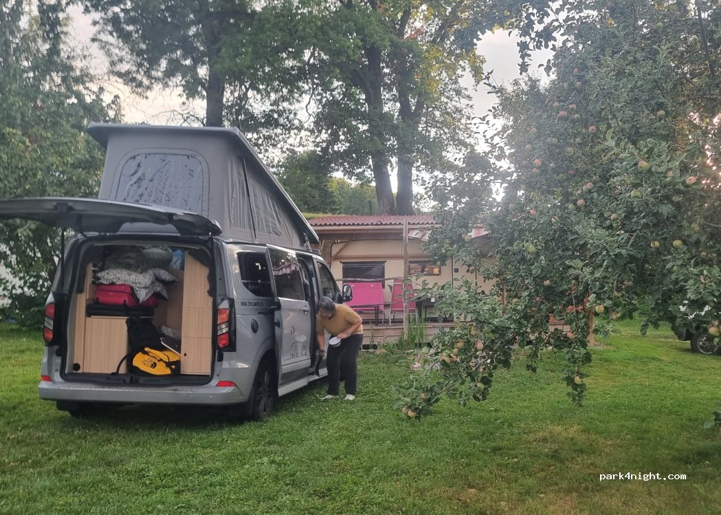 Auf dem schattigen Wiesencampingplatz, in einem Obstgarten, waren wir alleine mit einer sehr schönen Aussicht. ein angenehmer und effizienter Empfang durch den Eigentümer. Bargeld oder Scheck bereitstellen.