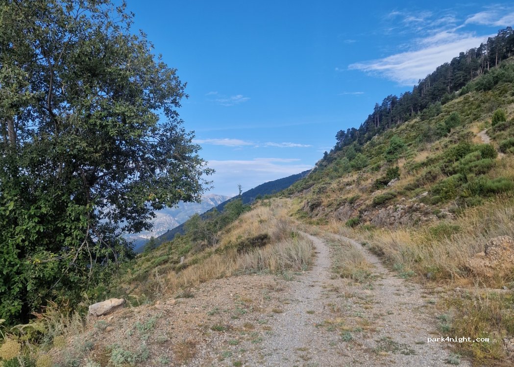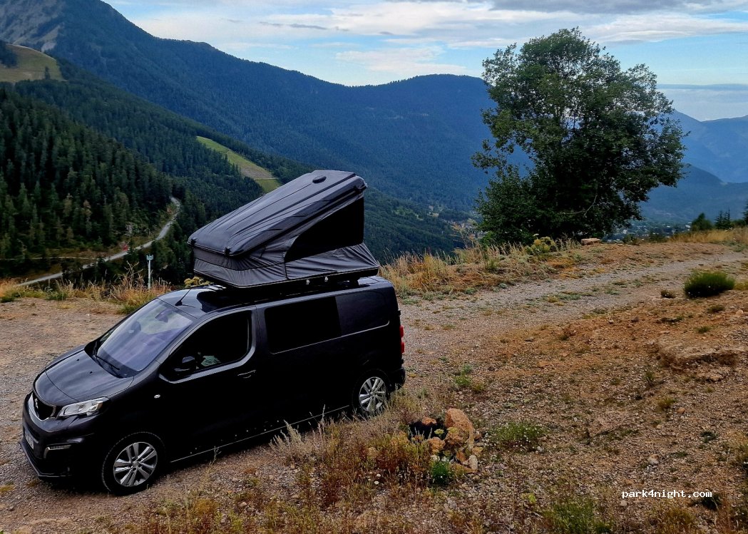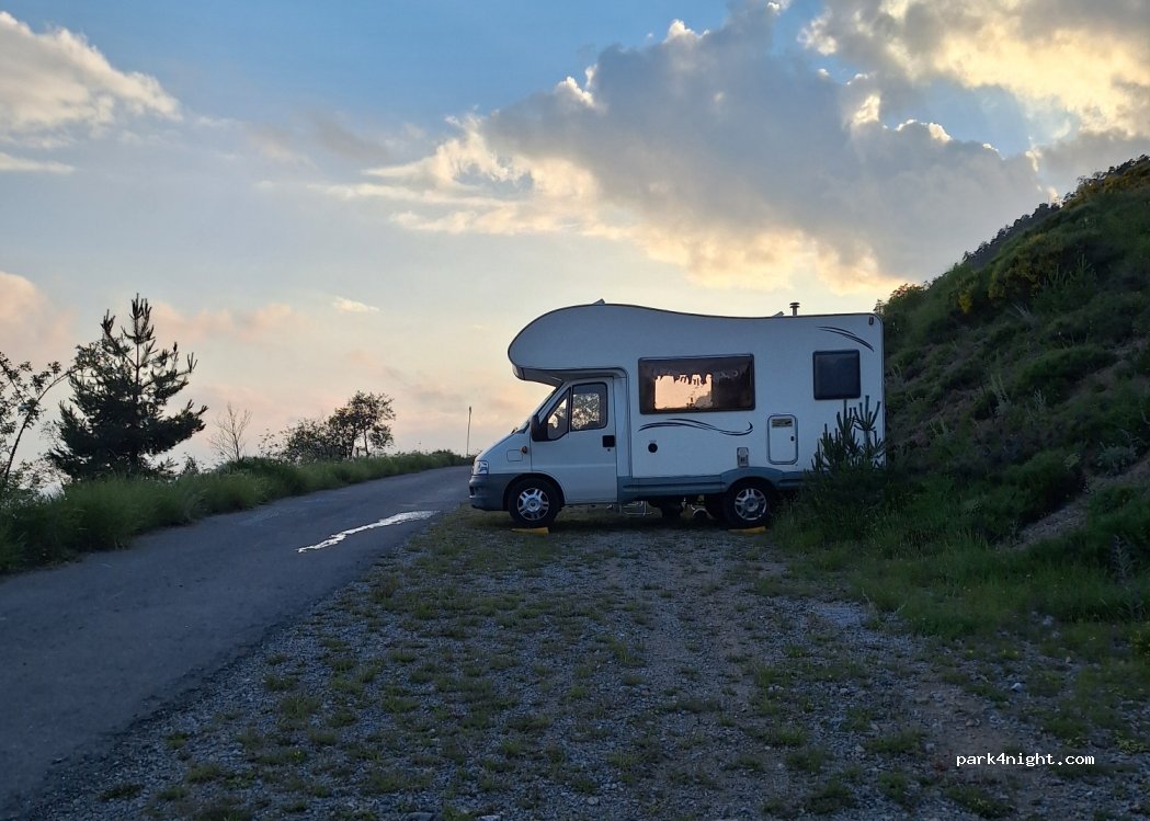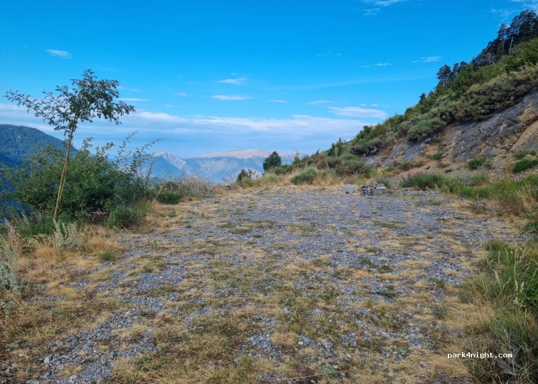 Spot calme avec pratiquement aucun passage, jolie vue sur la vallée. Deux places et une autre si on rentre dans le chemin à 50 mètres il y as une autre plate-forme. Si complet encore plusieurs possibilités en bord de route à l'intérieur de l'épingle.