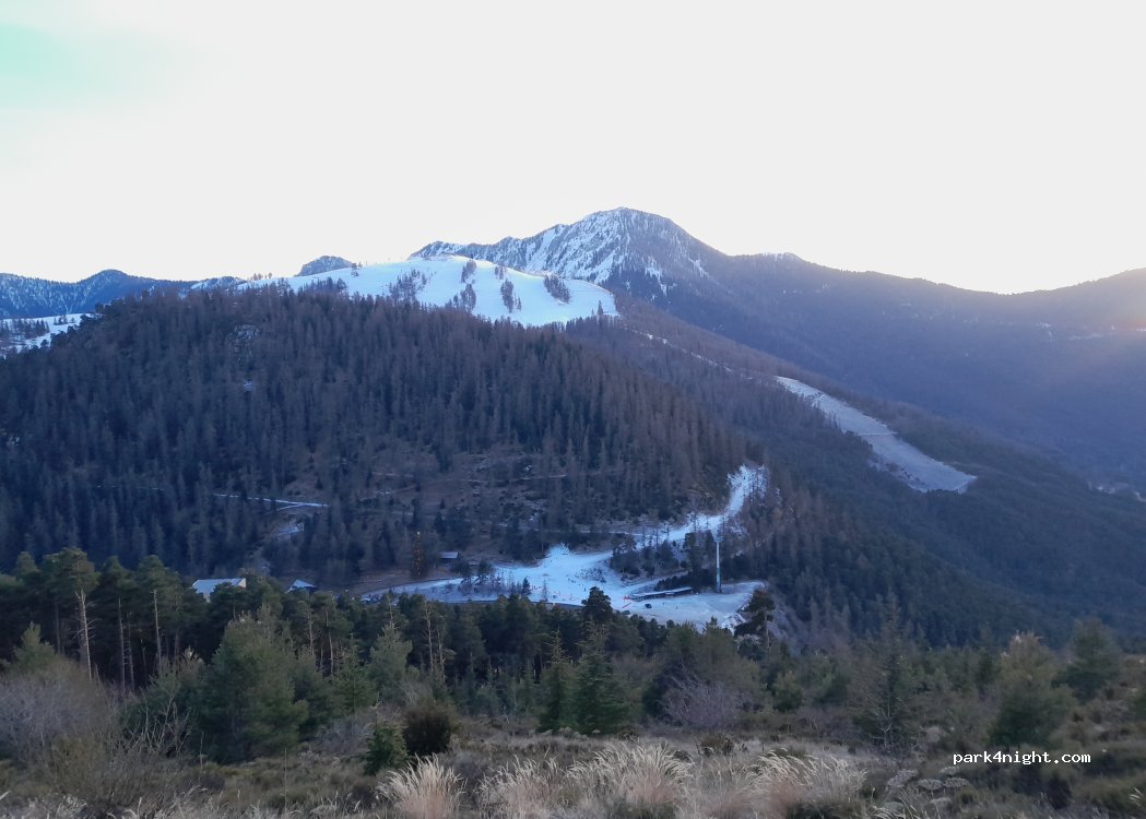 Also sehr ruhige Nacht. Ein oder sogar 2 Plätze flach. Höhe 1600 m. Sehr schöner 180°-Blick, schneebedeckte Berge im April, herrliche Sonnenuntergänge.