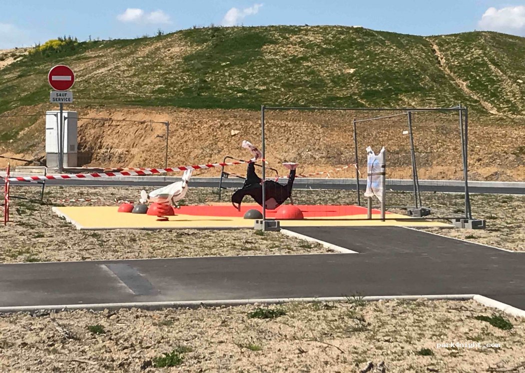 Pierrefitte rest area on RCEA. the children's games are not yet opened (brand new still in the packaging). The toilets are construction toilets and clean. The future toilets are not yet in operation. Electricity is available in the toilets.