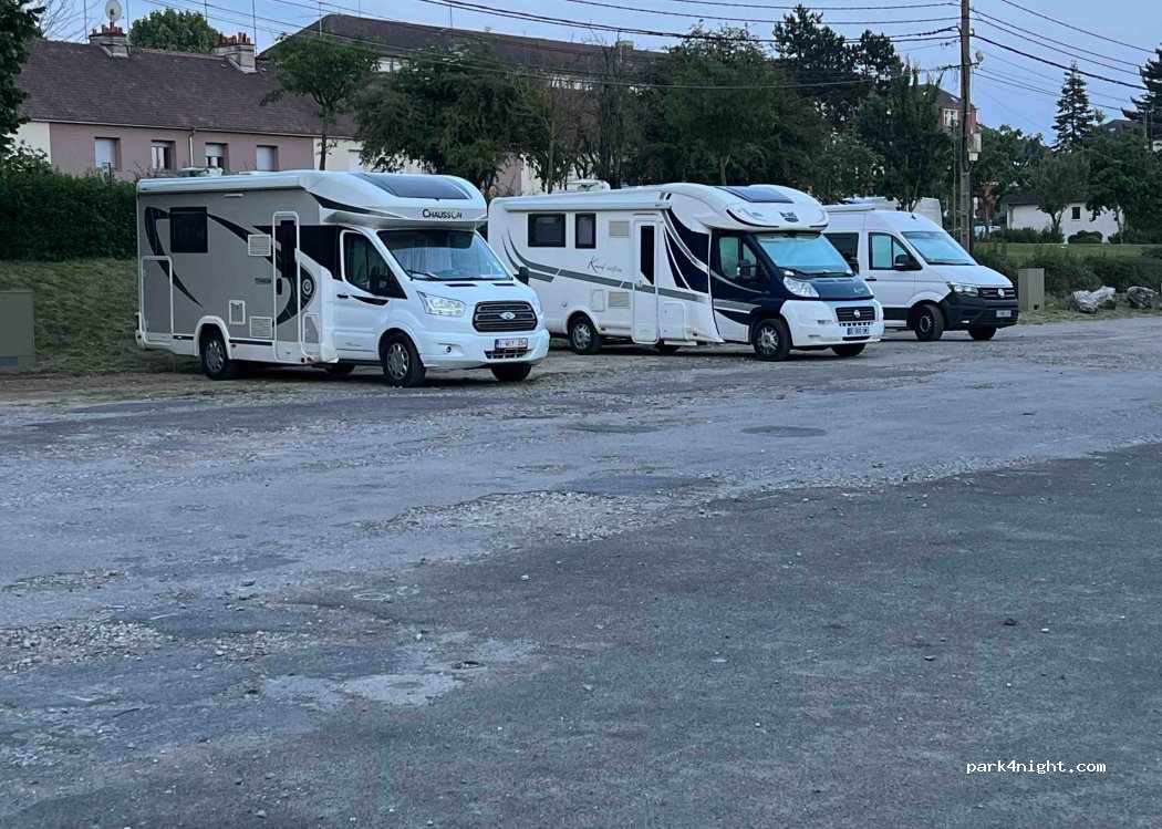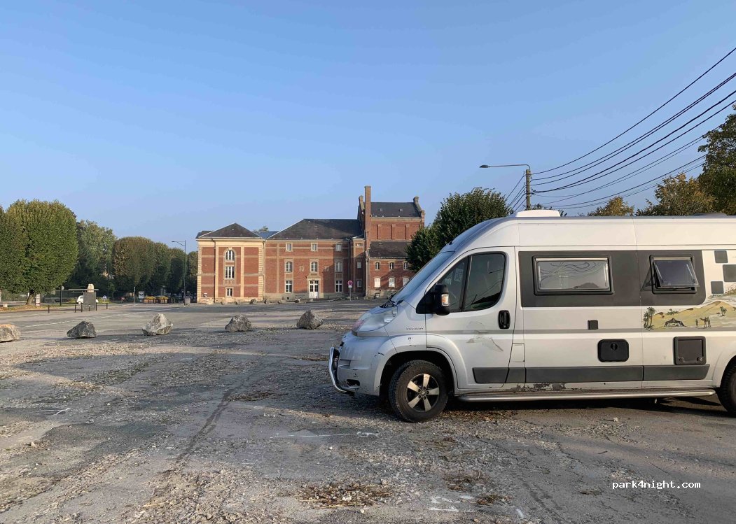 Un très vaste parking doublé en amont par des arbres au bord d’un sentier piéton. Le revêtement est en gros gravier et goudron. Aucun service mais la gratuité des lieux. Bruyant en journée car de nombreux bus viennent y stationner donc du passage. Pour une ville comme Abbeville, il est aberrant de ne pas proposer une aire de stationnement et de services. Si près de la côte et rien si ce n’est quelques parking ci et là.