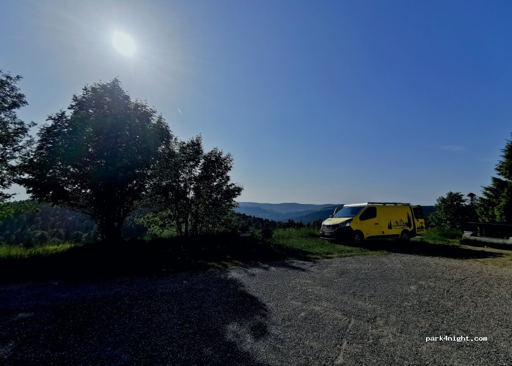 Car park at the Auberge des Chaumes du Grand Ventron, superb view, small source of drinking water, flat ground. The hostel is closed in autumn and spring so there is the possibility of parking without being bothered by customers. Very nice spot. Enter the latitude longitude coordinates to find it!