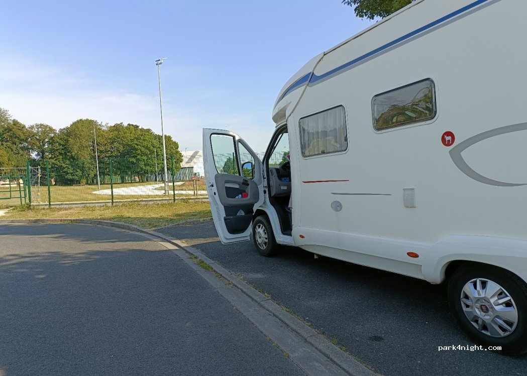 Grand parking à coté d'une piste d'athlétisme, au calme. Nous y avons dormi un samedi soir. En effet, barrière de 2m10.