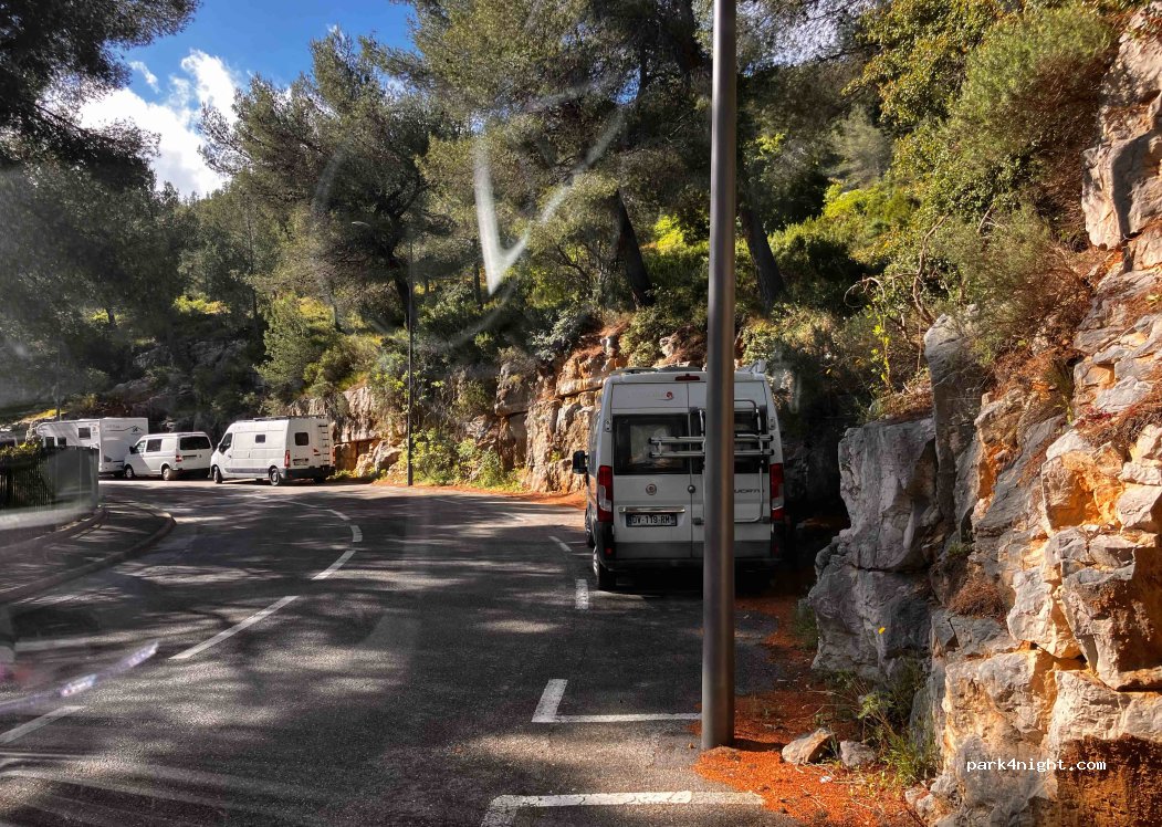 Not the most cosy place to stay but the only one where its allowed, and it´s free. quiet some traffic in the morning rush hours and only about 5 places which are flat, others are on quiet a steep road. 25min walk to fantastic Cassis city center. also take the hike to the calanques d´en veau and port de pin if you are in some physique shape, also the walk from Cassis to La Ciotat is is epic.
