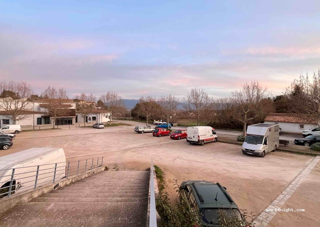 Parking bien plat mais la nuit des jeunes parlent et crient et les cloches toutes les heures et le matin le camion poubelle mais sinon beau village.