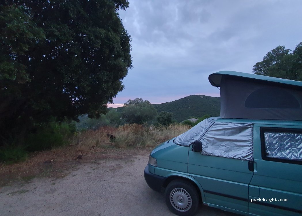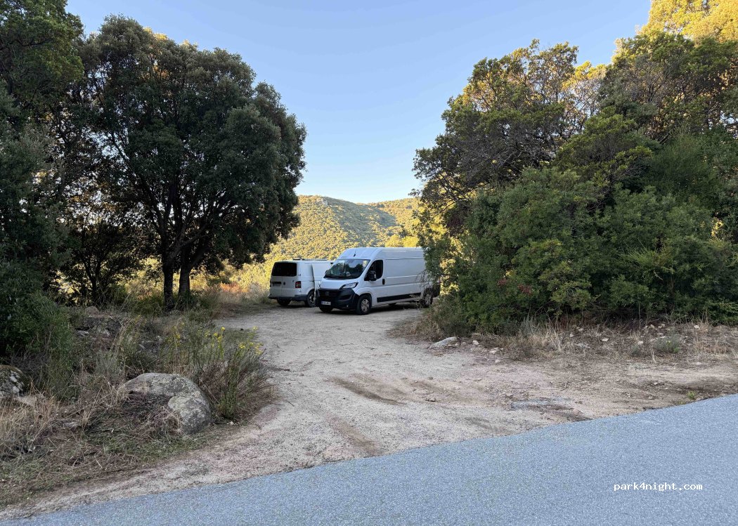 Buem sitio, escondido y tranquilo. No dormirmos porque estab ocupado pero noa dijeron que llevaban 3 días allí sin problema. Nosotros dormimos un poco más cerca de Sartenes en la misma carretera (donde un mirador) y ningún problema, es una carretera muy poco transitada, al menos de noche