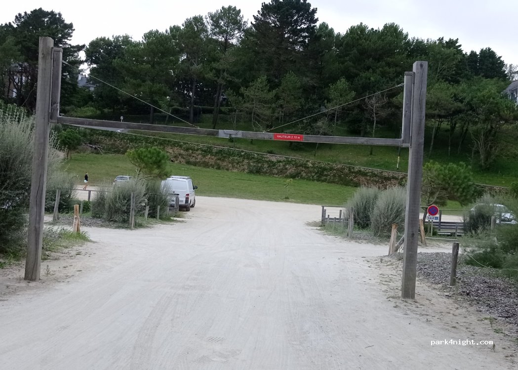 Barre de hauteur 2,10 mètres. Les 4 places pour camping car ont été supprimé.
