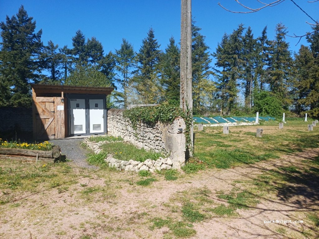 Grand domaine tout proche de Vichy. 4-5 emplacements à plat avec sanitaires très propres, branchement électrique et évacuation possible. 15€/nuit. Jolie vue dégagée, au calme. Possibilité de dîner à la table d'hôte sur réservation. Propriétaire très sympa et accueil chaleureux malgré notre arrivée tardive