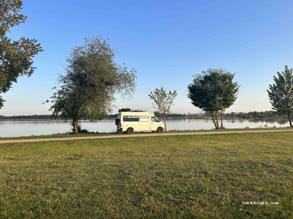 We used this as a park up on our way to Hungary as it is very near the border. Lovely view of the lake. Lots of fisherman but they didn’t seem bothered by us. Quiet night. Beware, there were so many snakes in the bushes/trees by the water… Possibly venomous so watch out especially if you have a dog with you. This put us off swimming. You can walk to bar on the lake but we didn’t use it.