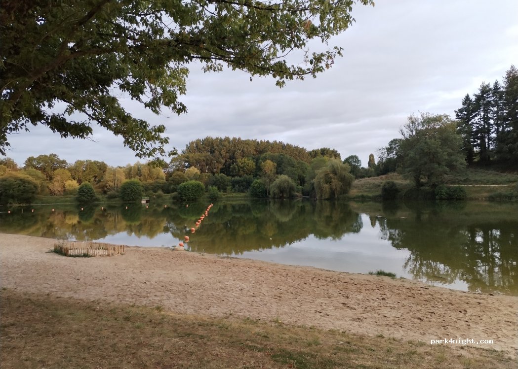 Seule sur ce très grand parking très calme avec les chouettes, vue agréable sur le plan d’eau qui reste accessible mais des travaux de rénovation sont en cours ; le camping est fermé il n’y a donc pas de services en cette période . Pour le reste conforme aux descriptions avec ce petit dévers mais endroit cool au vert ;)