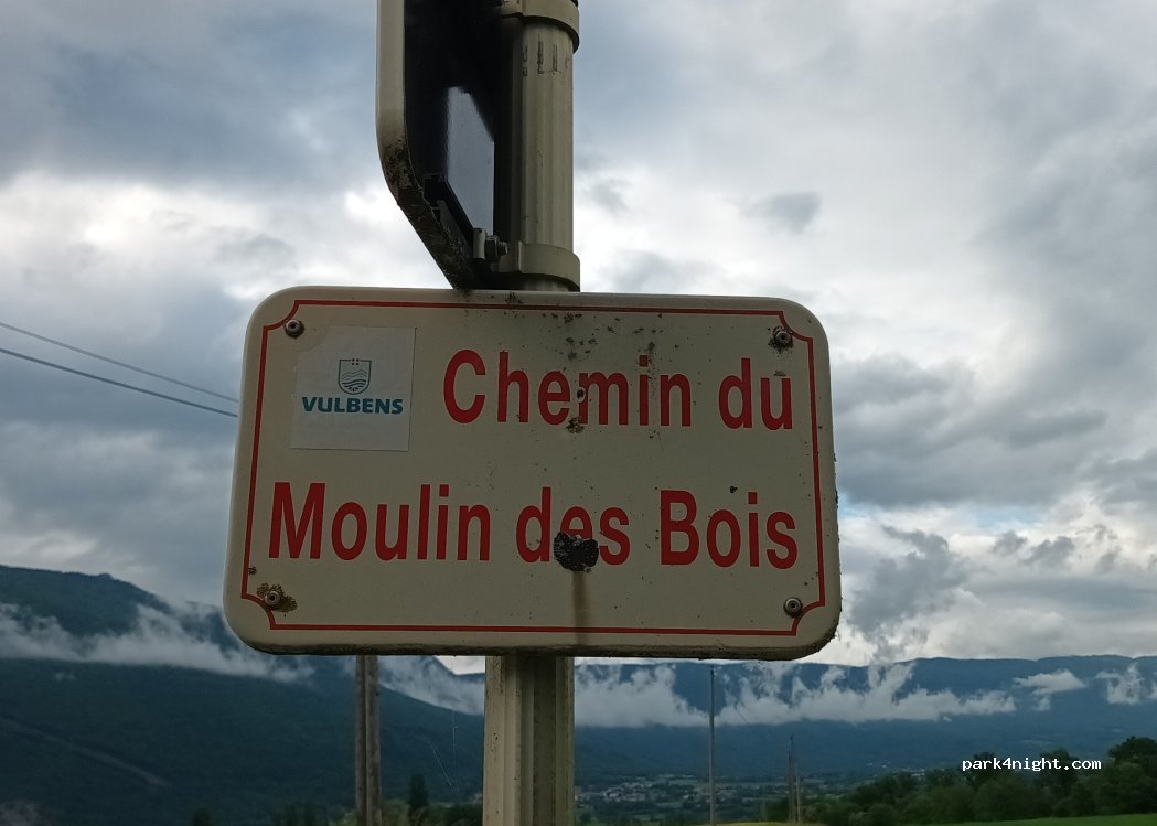 Endroit calme en pleine nature, dégagé de la route passante. Un petit ruisseau coule entre le parking champêtre gravillonné et l'aire de pique-nique ombragé qui peut convenir par exemple pour un bivouac de 'Rando-bikers' ! Tout pour se reposer en toute sécurité. Seul bémol, le survol des avions dans l'axe de la piste de l'aéroport de Genève... mais bon !...