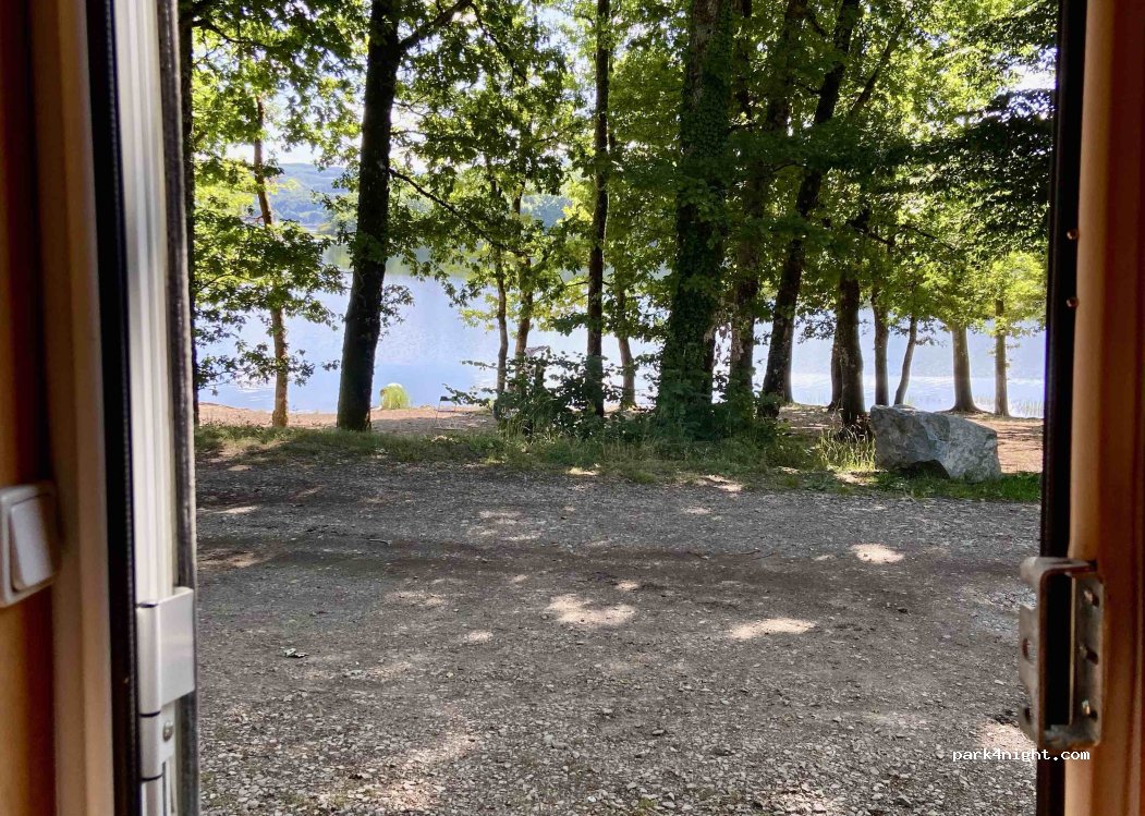 magnifique emplacement avec une vue sur le lac. très calme juste le chant des oiseaux et des grenouilles. malheureusement cet endroit comme tous les endroits autour du lac sont interdits pour le bivouac. nouvel arrêté préfectoral du 20/05/25. on l'a réalisé le lendemain matin. Les véhicules sont autorisés pour les pêcheurs qui débarquent leur bateau.