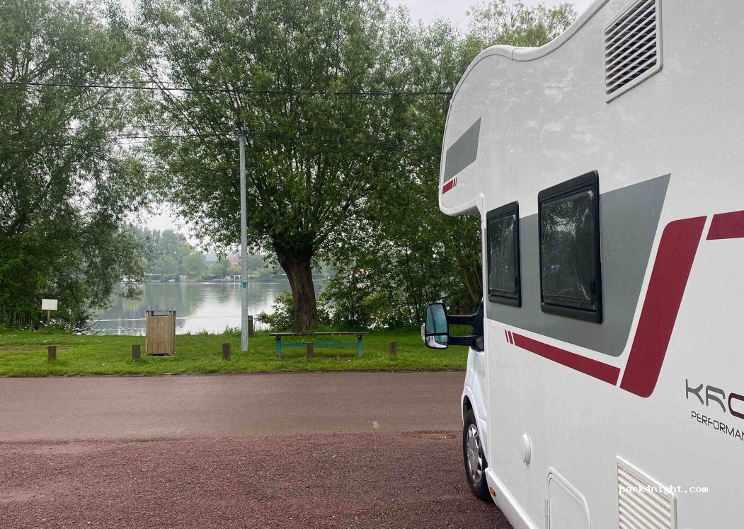 Perfect stop overnight after late eurotunnel crossing. Quiet & easy to find. Peaceful night & woke to beautiful lakeside setting & coffee / croissant in the cafe La Fregate. No facilities but WC in the cafe.