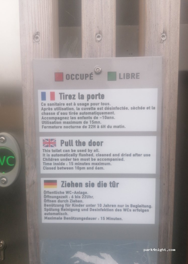 Nuit très calme, plein de place, toilettes publiques qui ferment la nuit de 22h à 6h. Vue sur le château, très sympa.