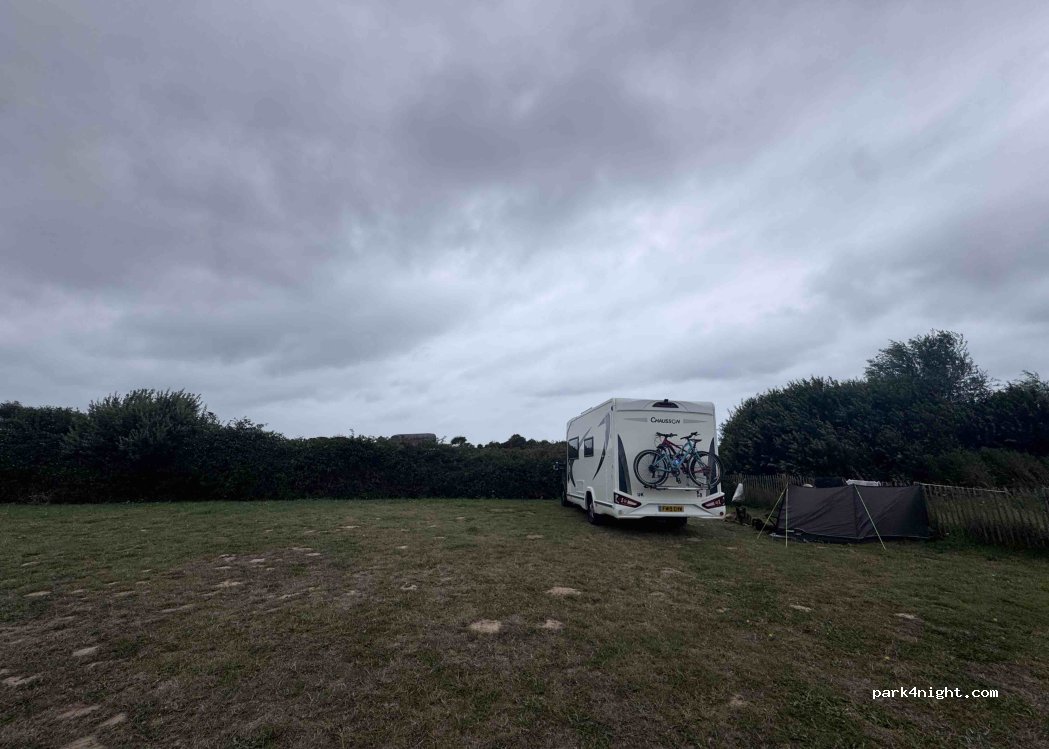 Terrain au calme et très bien placé (musée du mur de l'Atlantique à 240m) mis à disposition par la brasserie l'entre-mers si l'on y dîne. Le repas est copieux et de qualité. N'oubliez pas de réserver en amont.