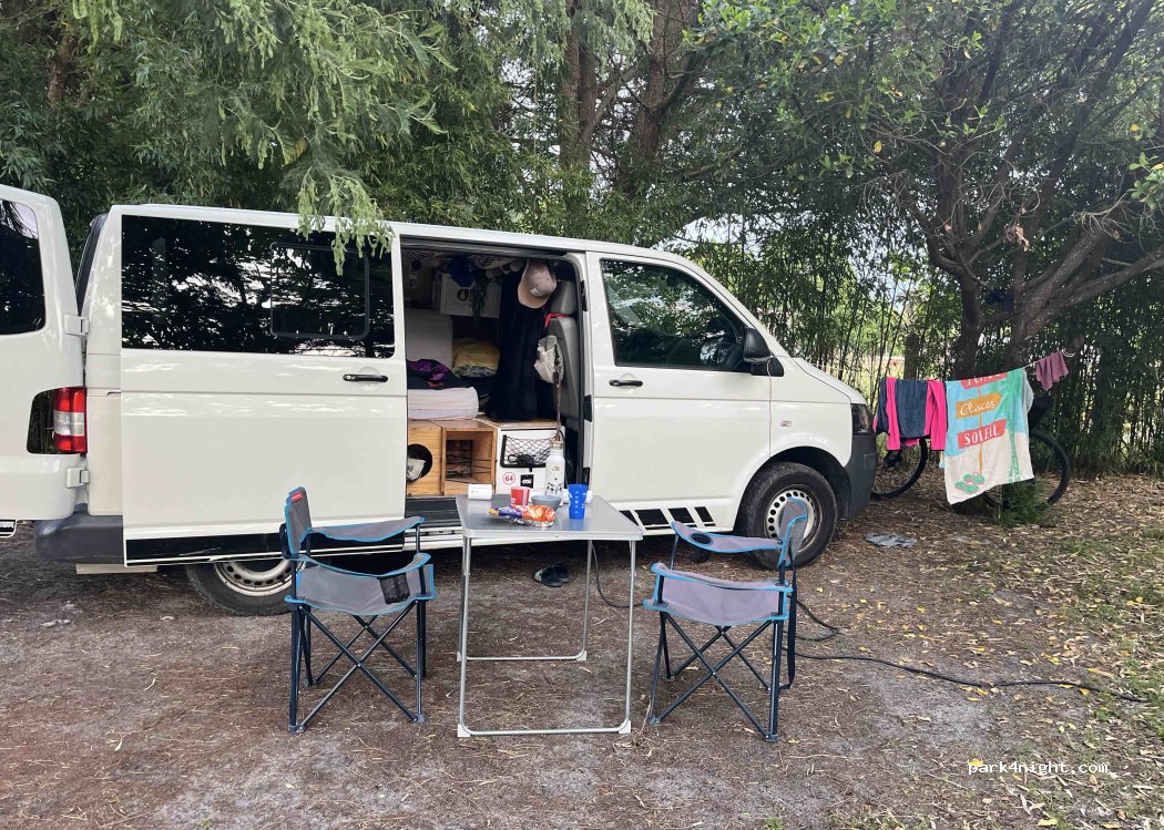 Sehr freundlicher Empfang! Ich wollte eigentlich mit meinem Minivan an den kostenlosen Strandplatz im Pinienwald, aber der ist gesperrt wegen Waldbränden. Darum war etwas spät da, war aber kein Problem. Sehr zu empfehlen! Aber auch klein. Eher für Van's oder mit Zelt.